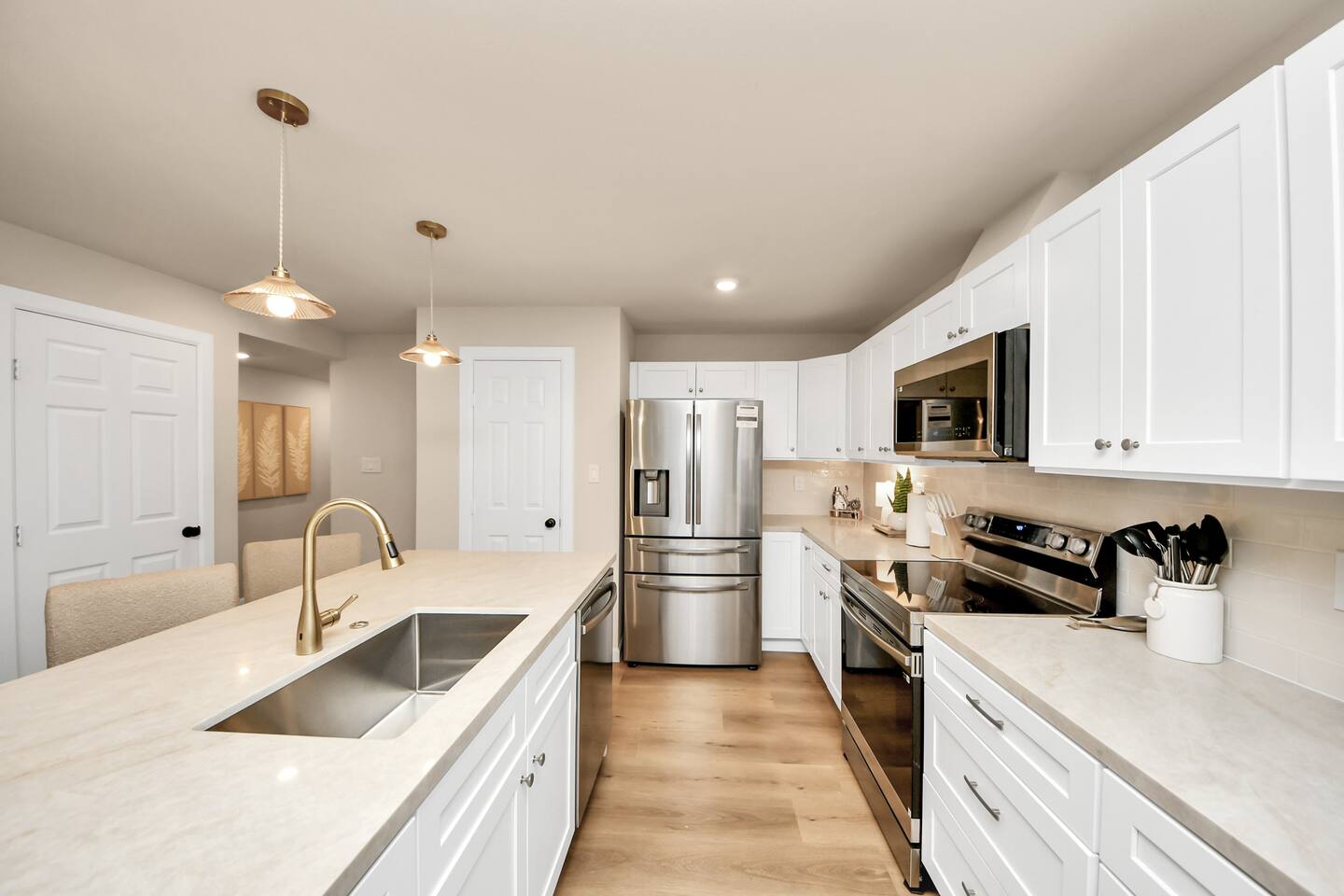 This newly updated duplex offers 8 bedrooms and 6 bathrooms and can host up to 16 guests with plenty of space to spread out. The home is divided into two levels, Unit A and Unit B, and each one has its own kitchen, living area, dining space, and bedrooms. The entire property sits behind a private fence with gated parking for your group. The backyard gives you a quiet place to relax and recharge. The space is fully fenced and set up for outdoor fun, whether you’re grilling, lounging, or spending time with family and friends. Stretch out on the outdoor furniture while dinner cooks on the BBQ and enjoy a peaceful pocket of outdoor comfort. ✔ 6-8 person Relaxation Hot Tub ✔ Large Patio Area ✔ BBQ Grill ✔ Outdoor Furniture ✔ Gas Fire Pit We hope you find your own kind of comfort and happiness here. Maybe that means unplugging for a bit, watching a movie, curling up with a good book, or enjoying a drink out in the backyard. If you need anything, just reach out. We’re local and always happy to help. Safe travels!
