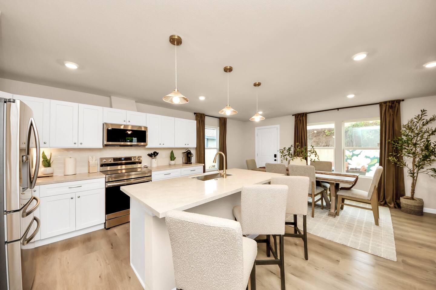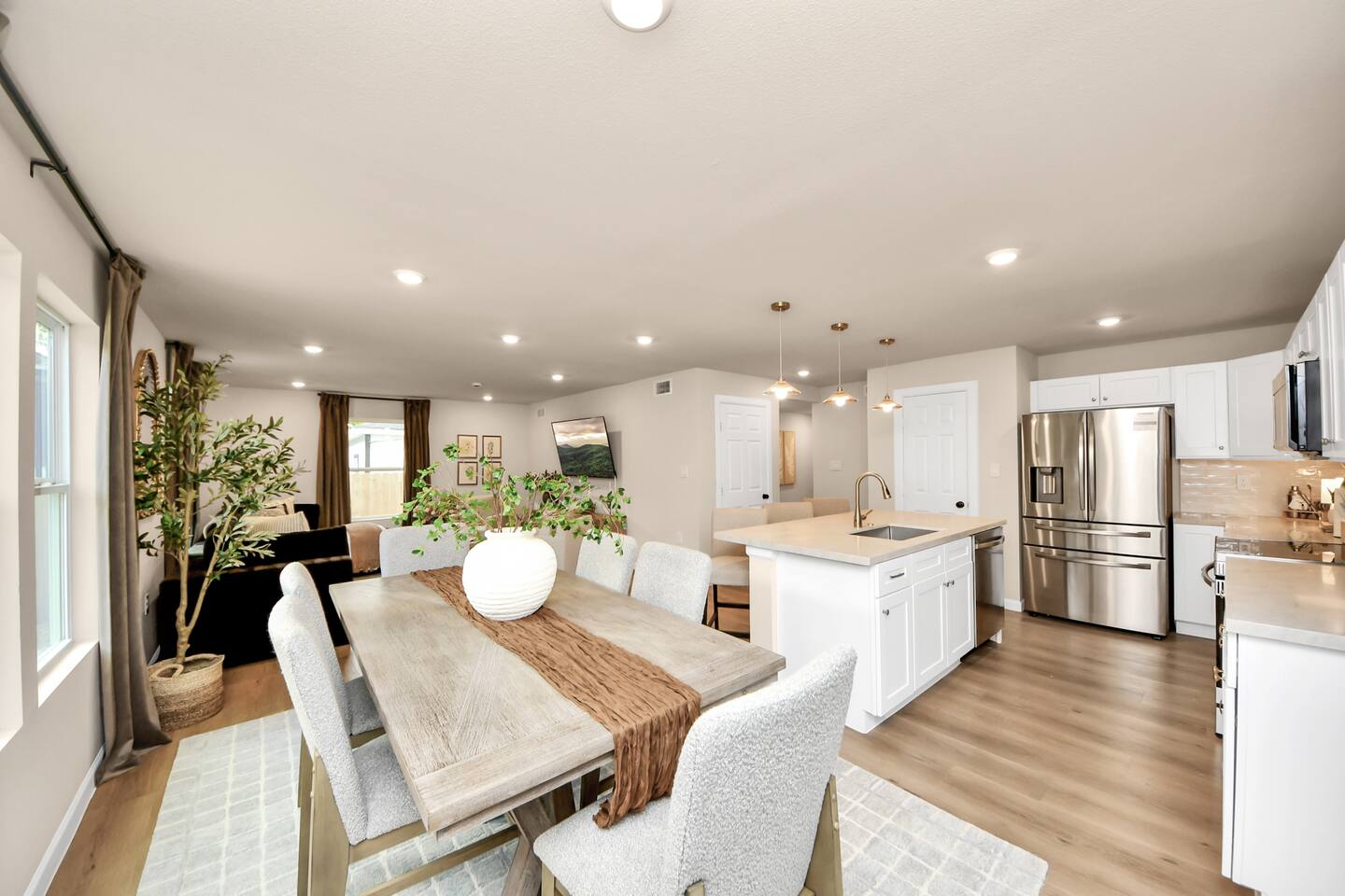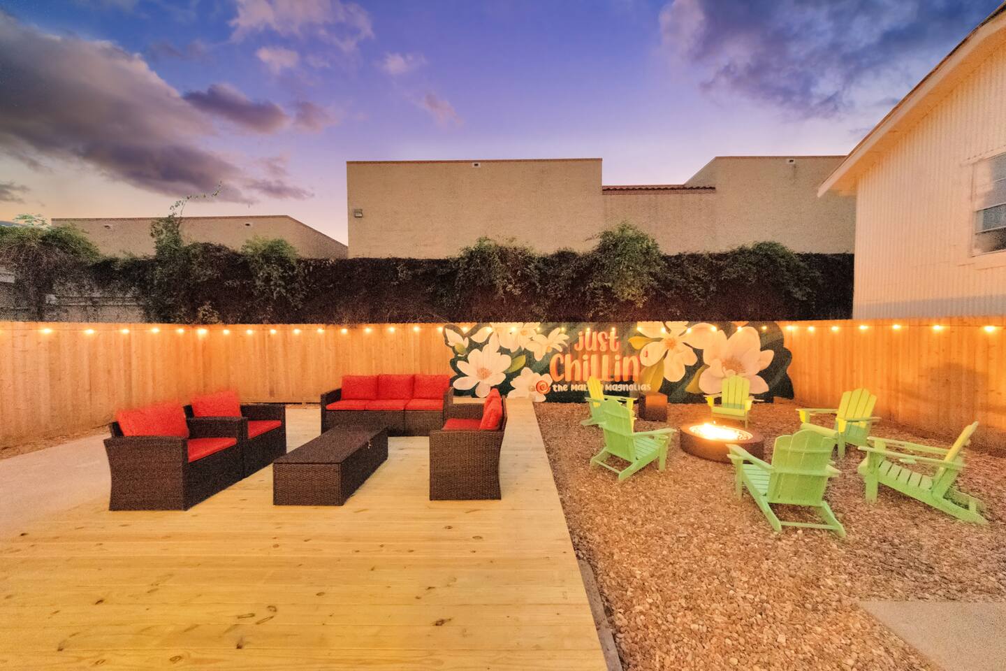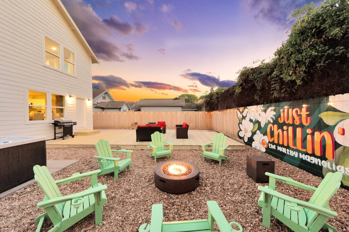 Welcome to The Maltby Magnolias Unit A (Downstairs). This freshly renovated 4 bedroom, 3 bath apartment in Houston’s Greater East End and comfortably hosts up to 8 guests. This unit has its own fully equipped kitchen, open living area, private bedrooms, and three updated bathrooms. Outside, you’ll find a custom hangout space with a patio, hot tub, and plenty of room to unwind with family and friends. The property also includes a tall privacy fence and gated parking for up to three vehicles.