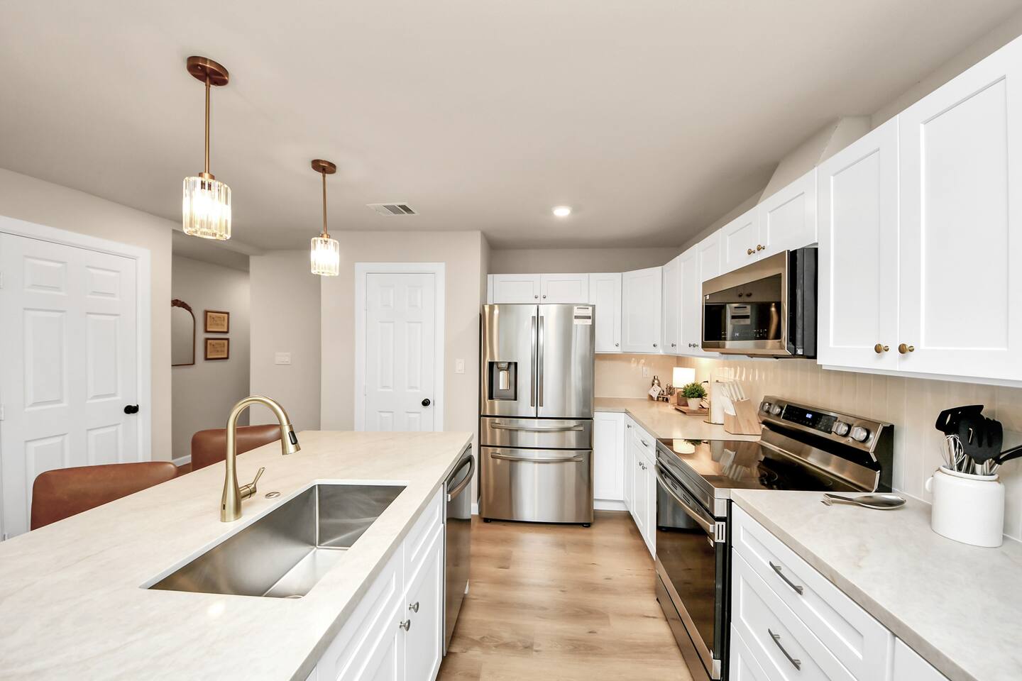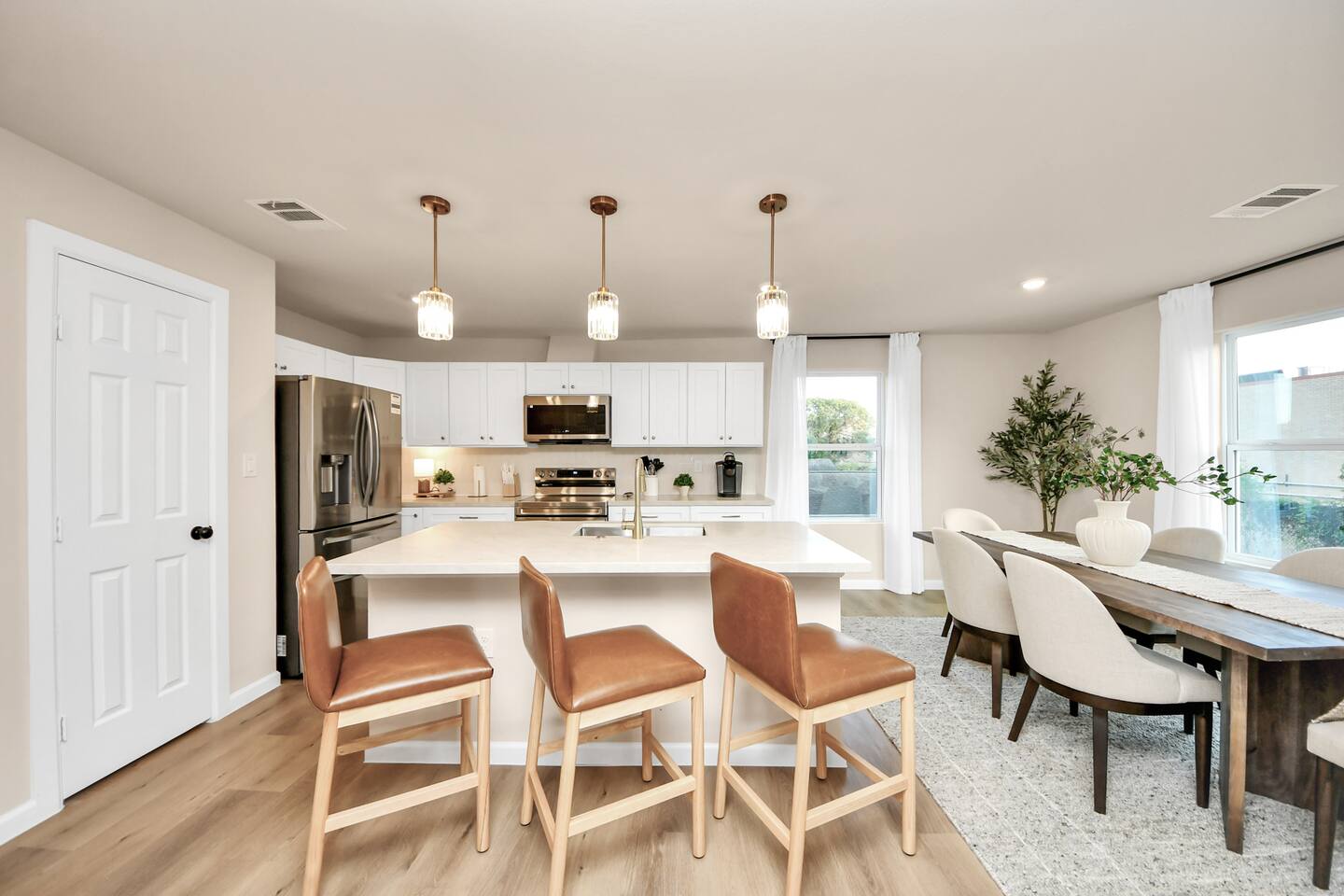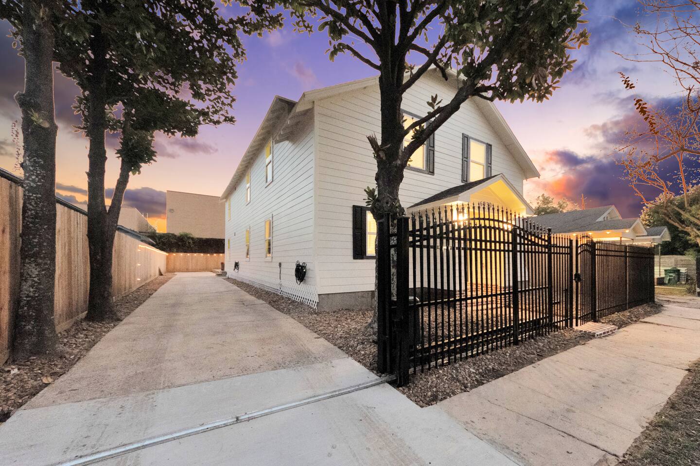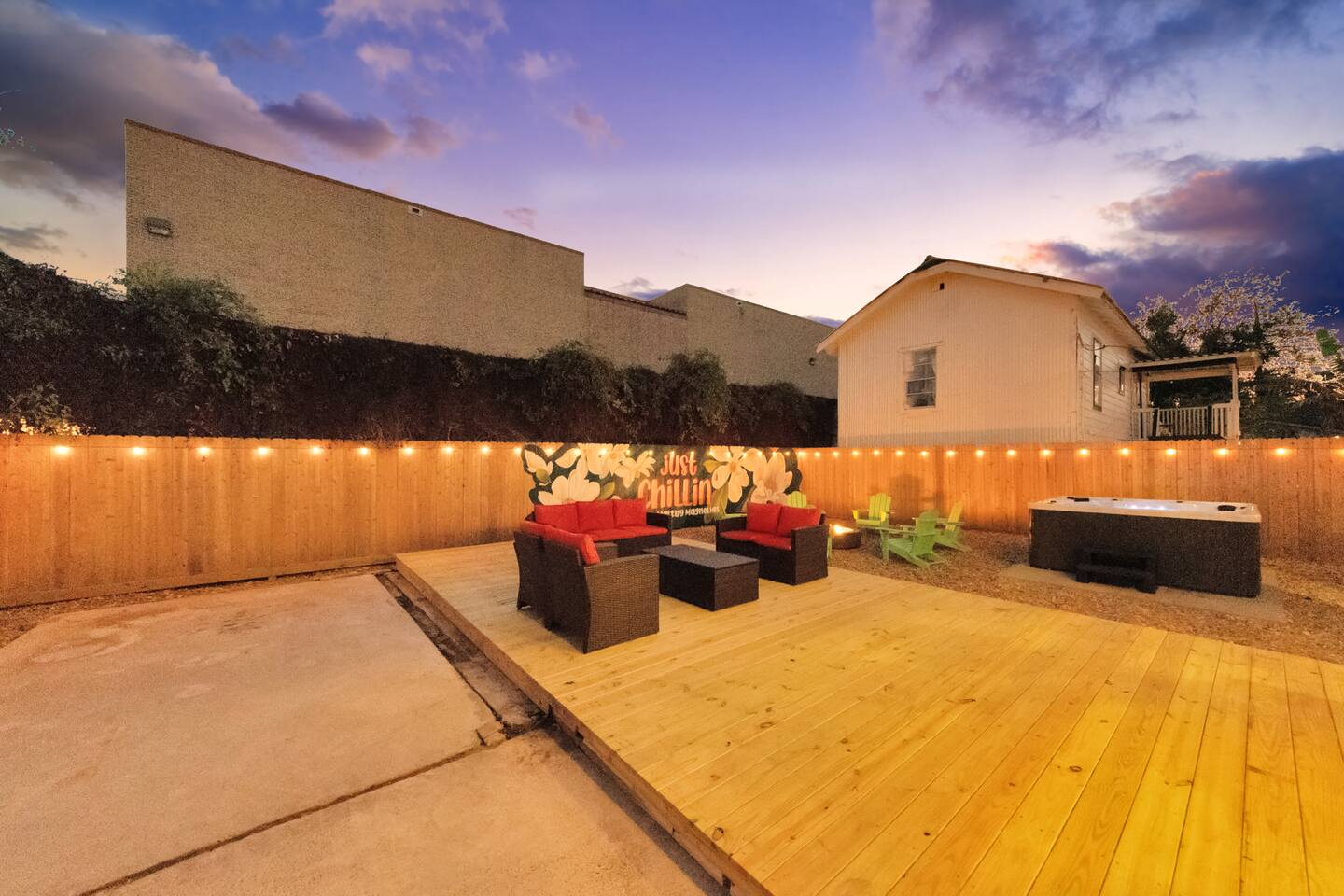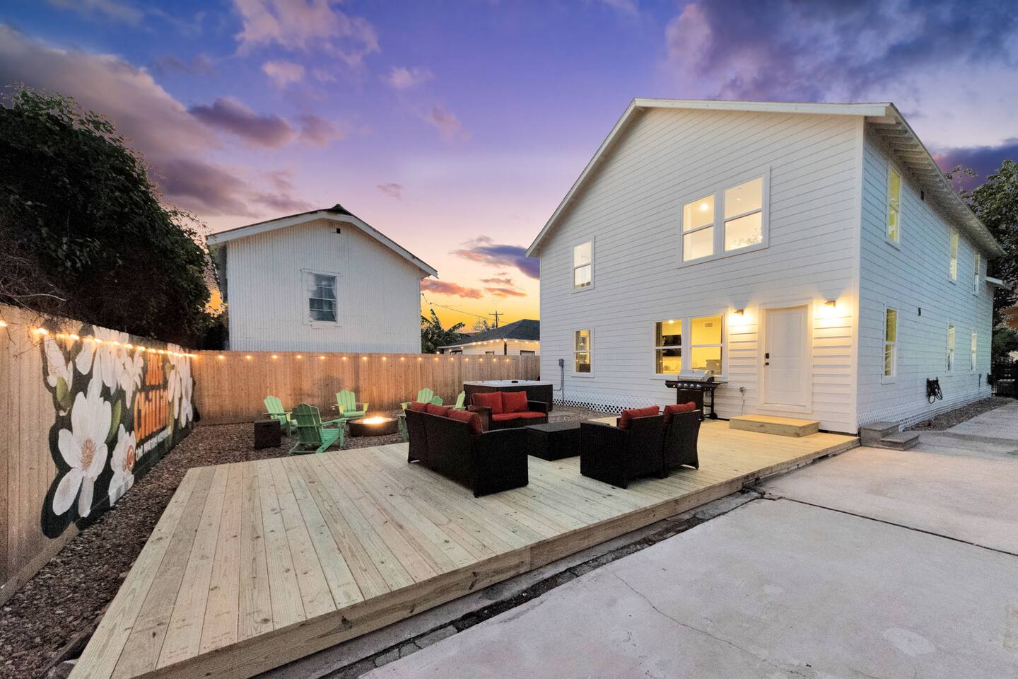 Welcome to The Maltby Magnolias Unit B (Upstairs). This freshly renovated 4 bedroom, 3 bath apartment in Houston’s Greater East End and comfortably hosts up to 8 guests. This unit has its own fully equipped kitchen, open living area, private bedrooms, and three updated bathrooms. Outside, you’ll find a custom hangout space with a patio, hot tub, and plenty of room to unwind with family and friends. The property also includes a tall privacy fence and gated parking for up to three vehicles.