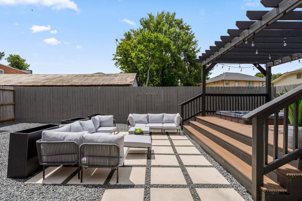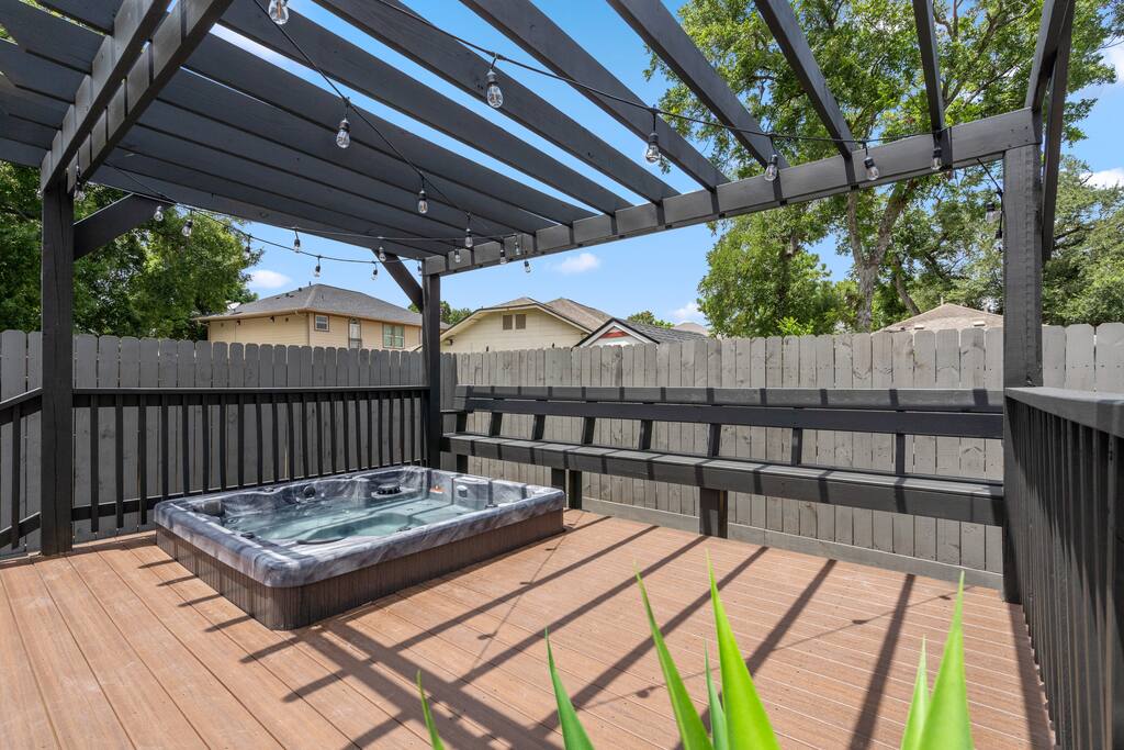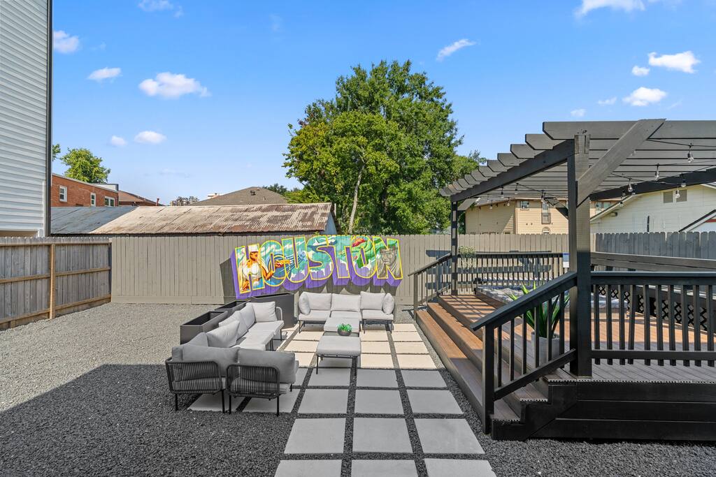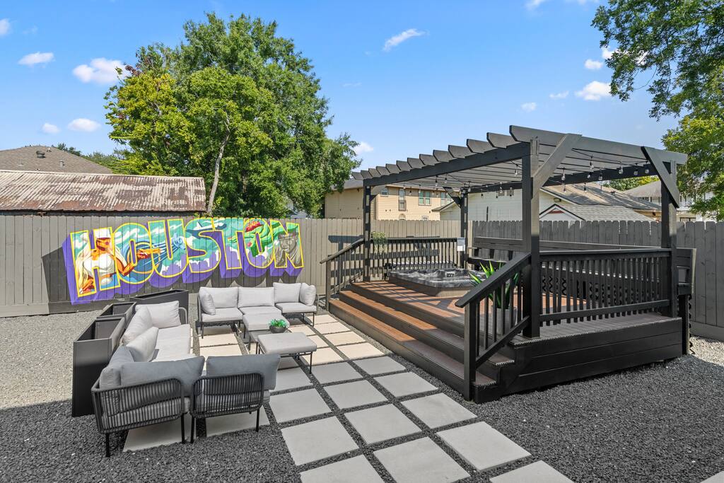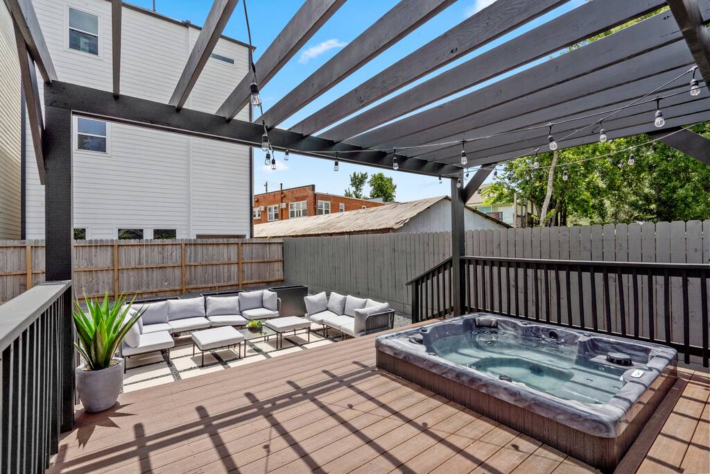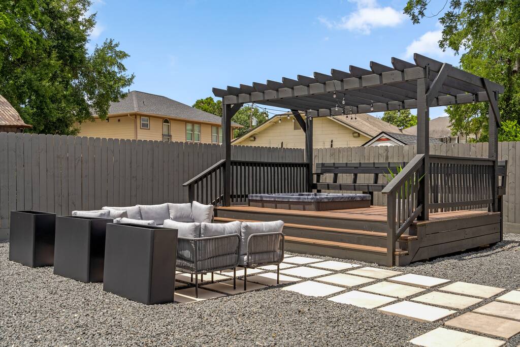 Welcome to The Pearl of EaDo (Goodfellas Vibe)! This stylish and spacious 3-bedroom, 2-bath apartment offers the perfect mix of comfort, location, and amenities—ideal for families and friends groups! Step outside to a beautifully maintained shared patio area—perfect for relaxing with your morning coffee or winding down in the evening. Enjoy the hot tub, string lights, and lounge seating, a peaceful spot to reset after a day in the city.