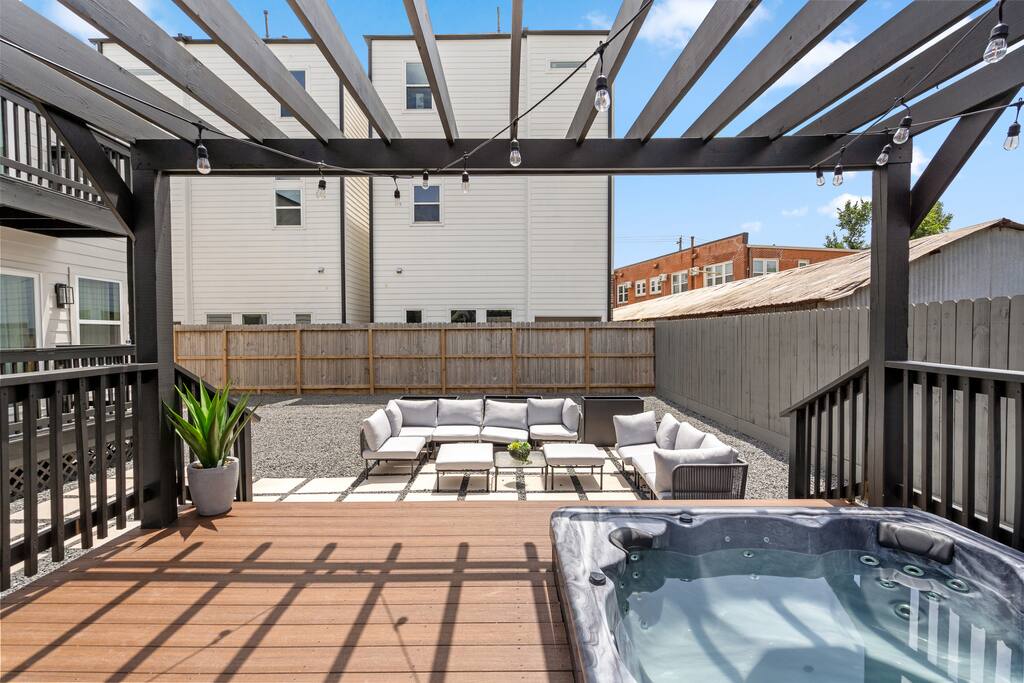 Configured as an up/down duplex, you have access to the DOWNSTAIRS apartment which includes a fully appointed kitchen, 3-bedrooms, 2-bathrooms that sleeps up to 6 people. Enjoy the Goodfellas vibe! All Bedrooms: Queen-sized beds, Smart TVs Living Room: Open layout with comfy seating, a smart TV, and large windows that bring in natural light. Kitchen & Dining: Fully stocked with stainless steel appliances, cookware, coffee maker, and seating for six. 🌿 Outdoor Amenities Step outside to a beautifully maintained shared patio area—perfect for relaxing with your morning coffee or winding down in the evening. Enjoy the hot tub, string lights, and lounge seating—a peaceful spot to reset after a day in the city. 👍 Extras Fast Wi-Fi Central A/C + heating In-unit washer/dryer Free driveway parking Self check-in via keypad Whether you're in town for work, fun, or a bit of both, this well-located EaDo house offers all the essentials—and a few extras—to make your stay comfortable and memorable.
