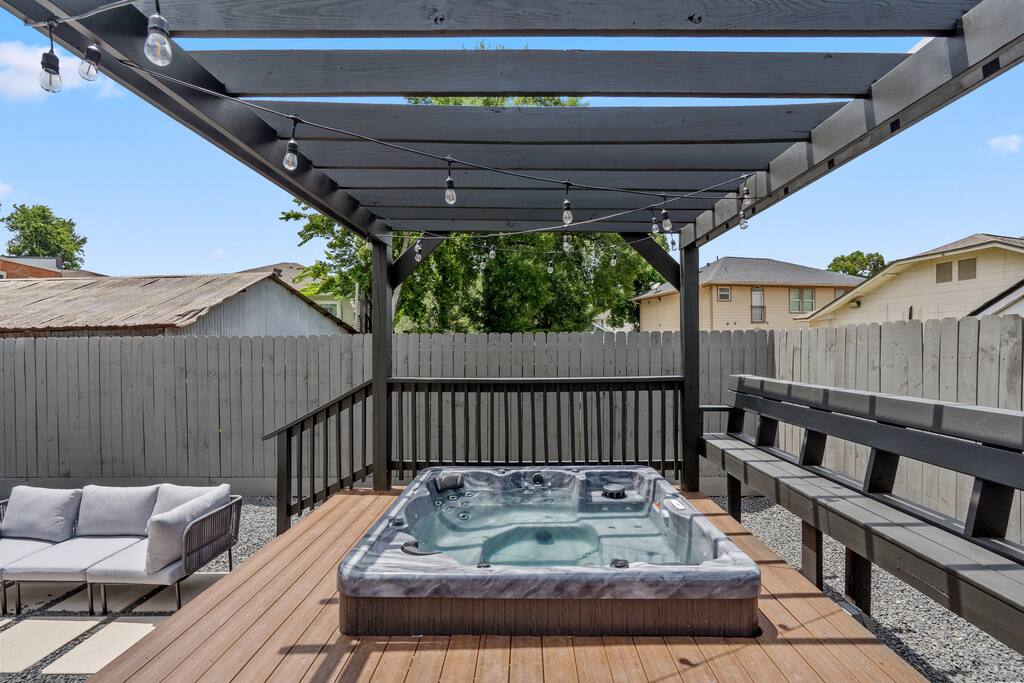 Welcome to The Pearl of EaDo - Unit B (Upper East Side Vibes). This stylish and spacious 3-bedroom, 2-bath apartment offers the perfect mix of comfort, location, and amenities—ideal for families and friends groups! Step outside to a beautifully maintained shared patio area—perfect for relaxing with your morning coffee or winding down in the evening. Enjoy the hot tub, string lights, and lounge seating, a peaceful spot to reset after a day in the city.