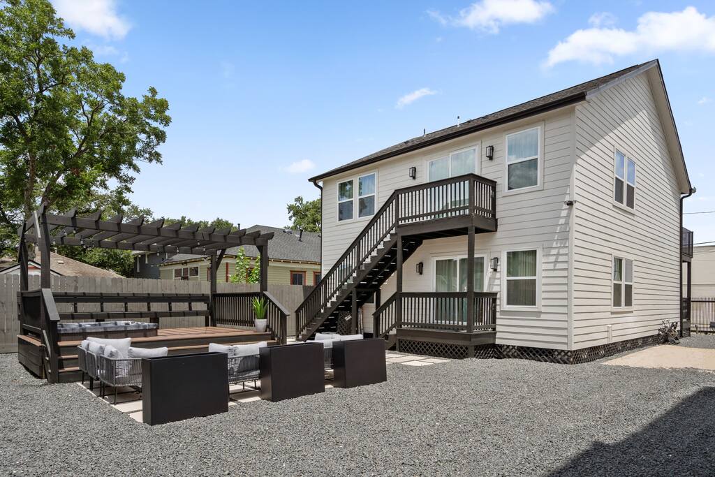 Configured as an up/down duplex, you have access to the UPSTAIRS apartment which includes a fully appointed kitchen, 3-bedrooms, 2-bathrooms that sleeps up to 6 people. Enjoy the Upper East Side vibe! All Bedrooms: Queen-sized beds, Smart TVs Living Room: Open layout with comfy seating, a smart TV, and large windows that bring in natural light. Kitchen & Dining: Fully stocked with stainless steel appliances, cookware, coffee maker, and seating for six. 🌿 Outdoor Amenities Step outside to a beautifully maintained shared patio area—perfect for relaxing with your morning coffee or winding down in the evening. Enjoy the hot tub, string lights, and lounge seating—a peaceful spot to reset after a day in the city. 👍 Extras Fast Wi-Fi Central A/C + heating In-unit washer/dryer Free driveway parking Self check-in via keypad Whether you're in town for work, fun, or a bit of both, this well-located EaDo house offers all the essentials—and a few extras—to make your stay comfortable and memorable.